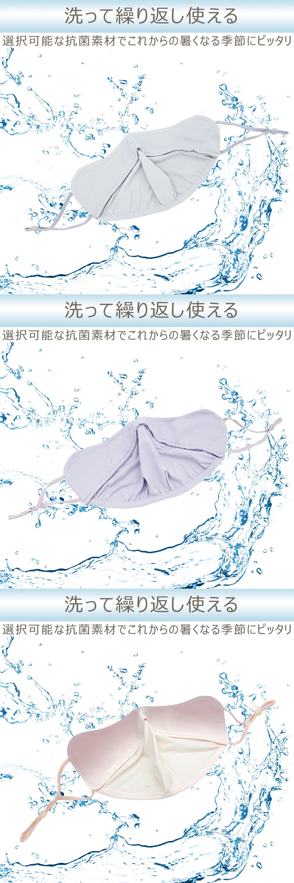 冷感生地の二層設計です。内側は通気性のよいメッシュ生地に。外側もアイスシルク生地を使用し、蒸れを軽減することで、肌触りもよい冷感マスクです。