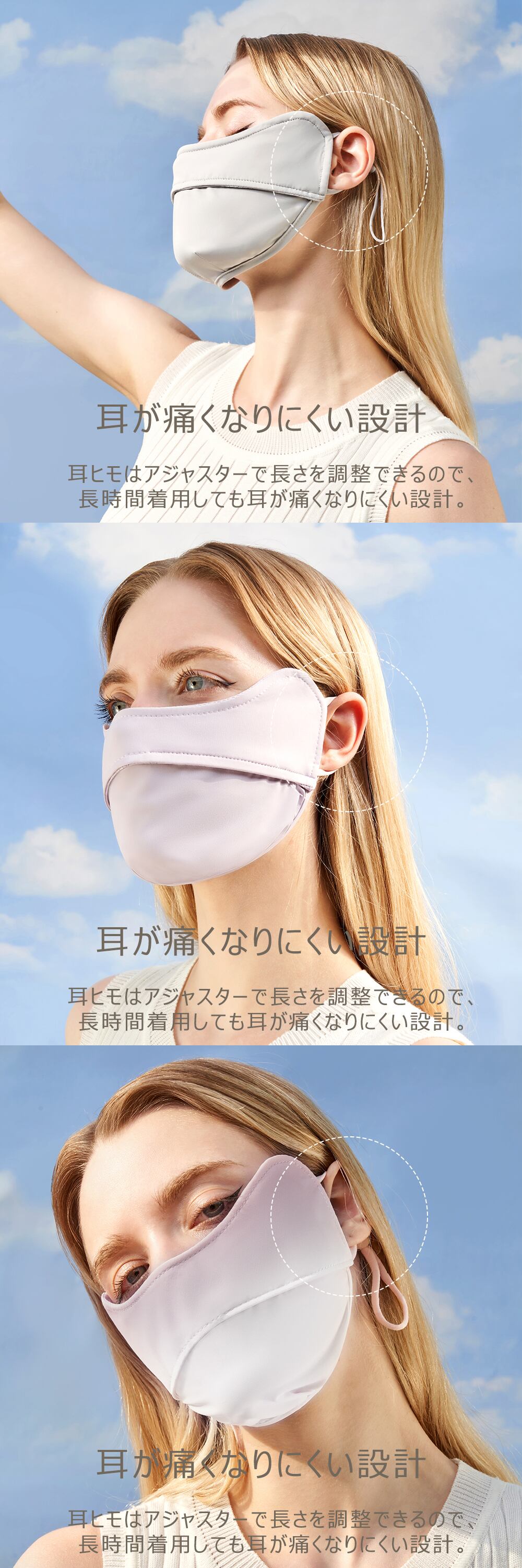 目元から顎まで顔全体をカバーして、紫外線を99%以上カットしてくれるUVカットマスクです。日焼け防止対策にバッチリ。