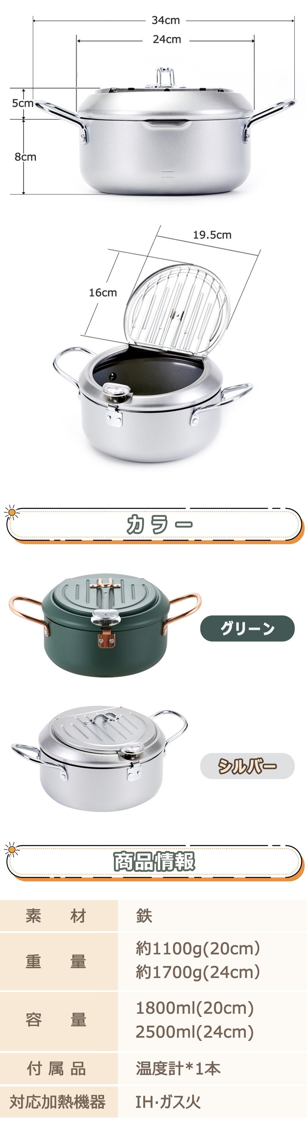 天ぷら鍋 温度計付き フタ付き あげもの鍋 揚げ鍋