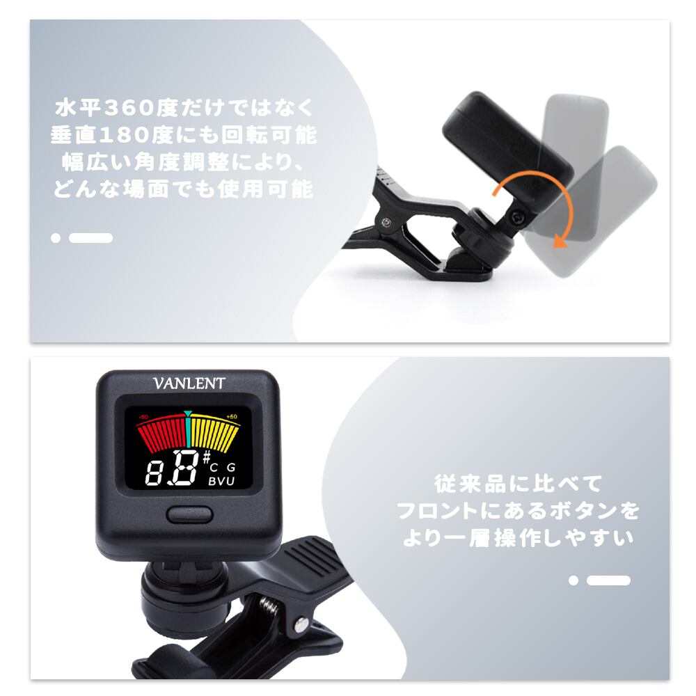 カラフルな液晶ディスプレイに表示が一目瞭然で、音程が合う場合は赤から緑に変わります。