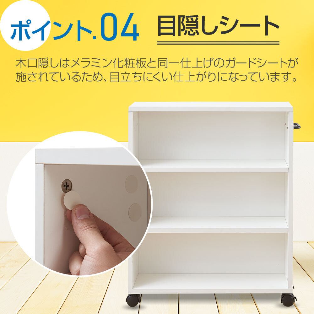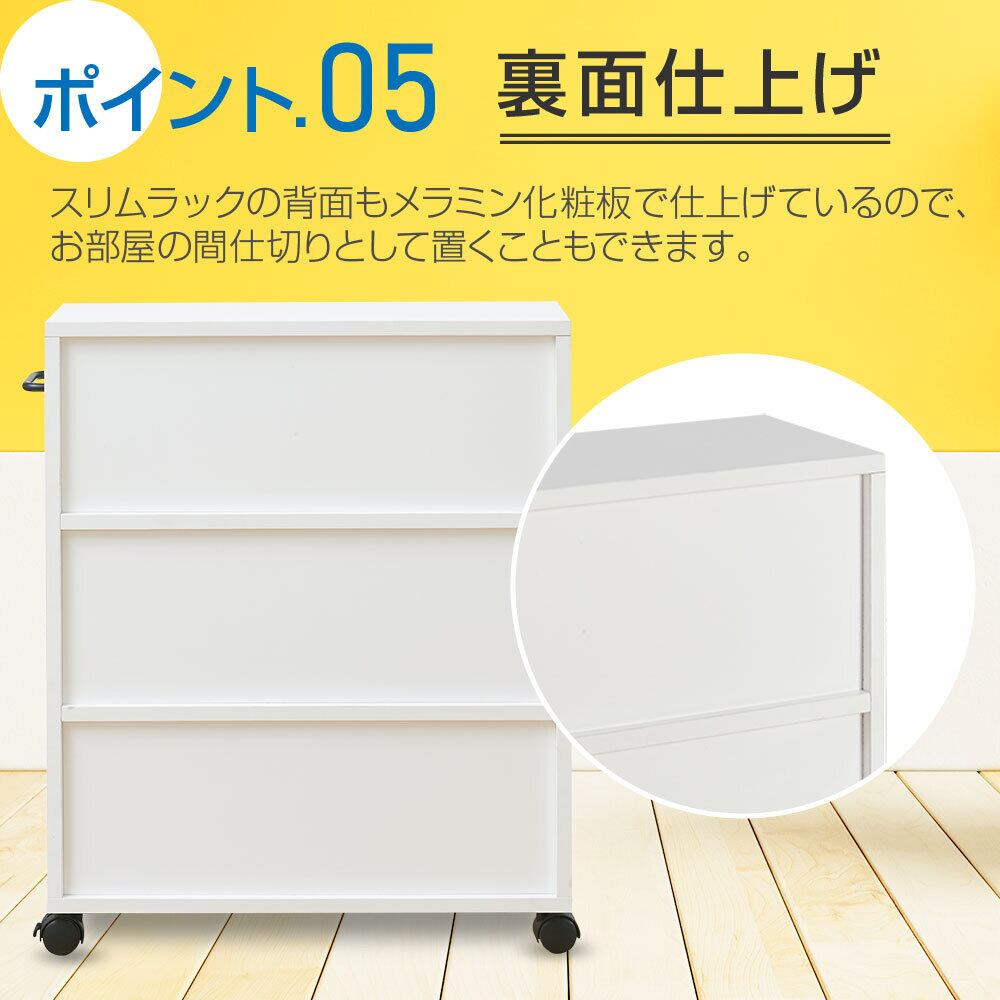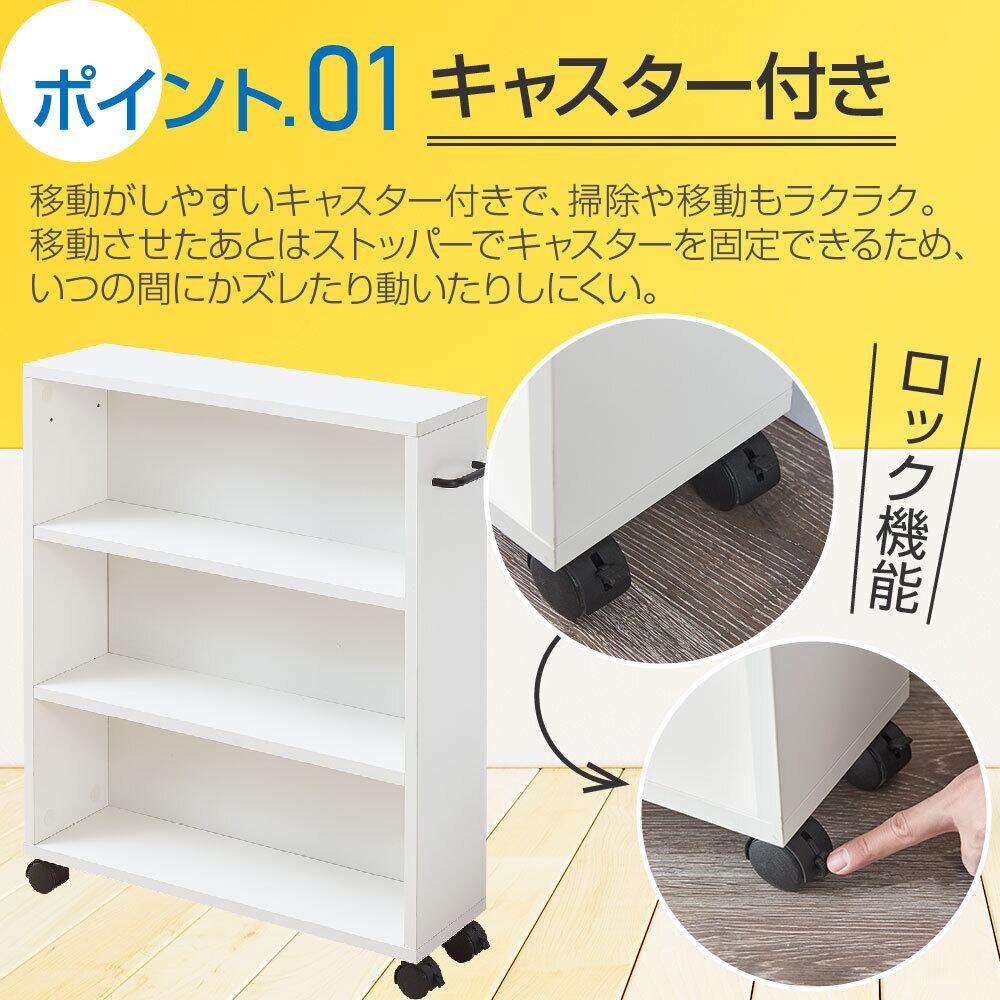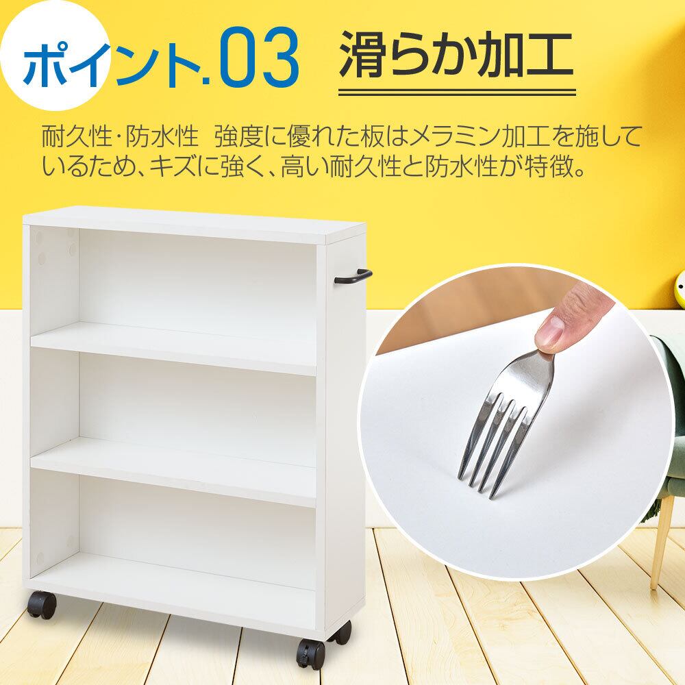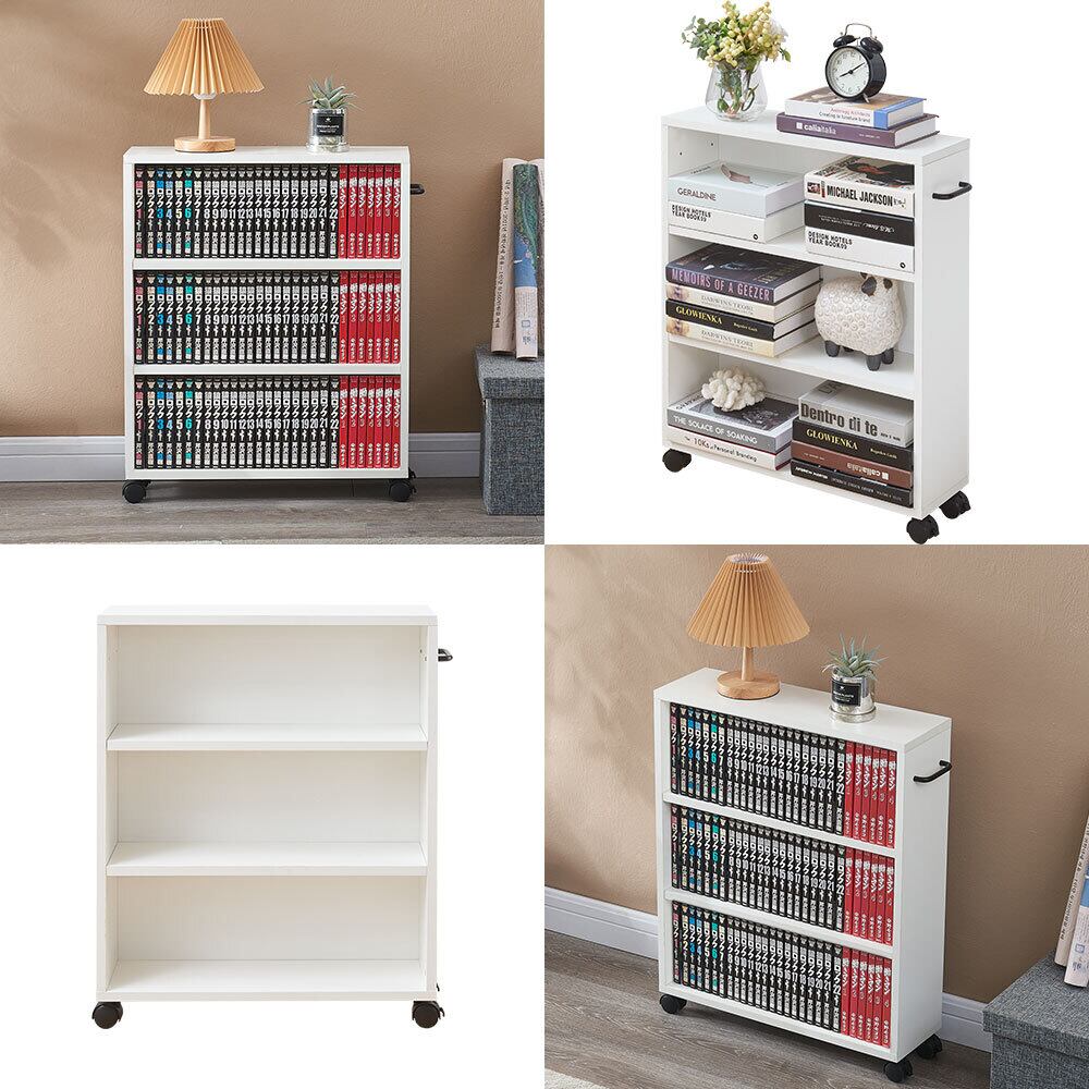 本棚 大容量 スリム 幅55*奥行17*高さ68.3cm キャスター 3段 木製 キャスター付き本棚