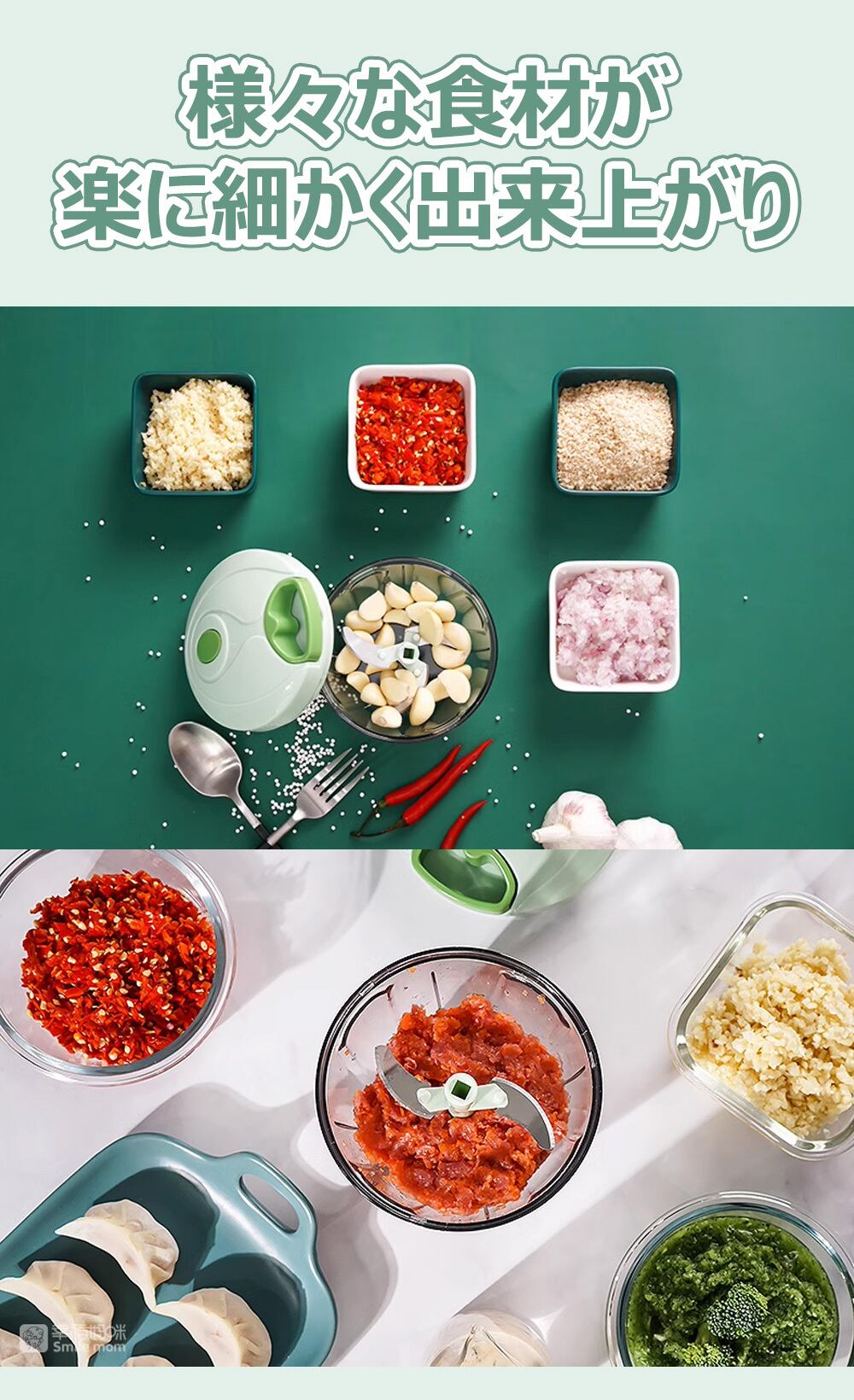 a363-b みじん切り チョッパー 3枚刃 コンパクト 170ml スライサー 手動 フードプロセッサー みじん切り器 フードチョッパー みじん切りカッター フードカッター