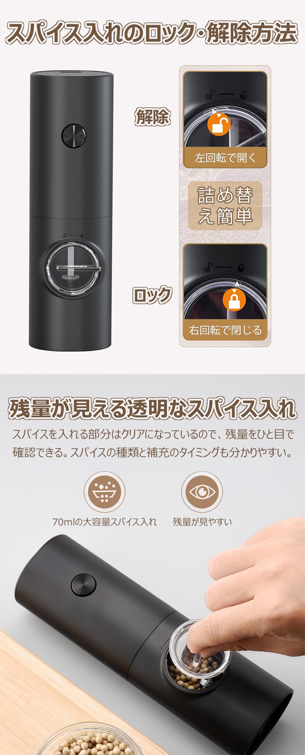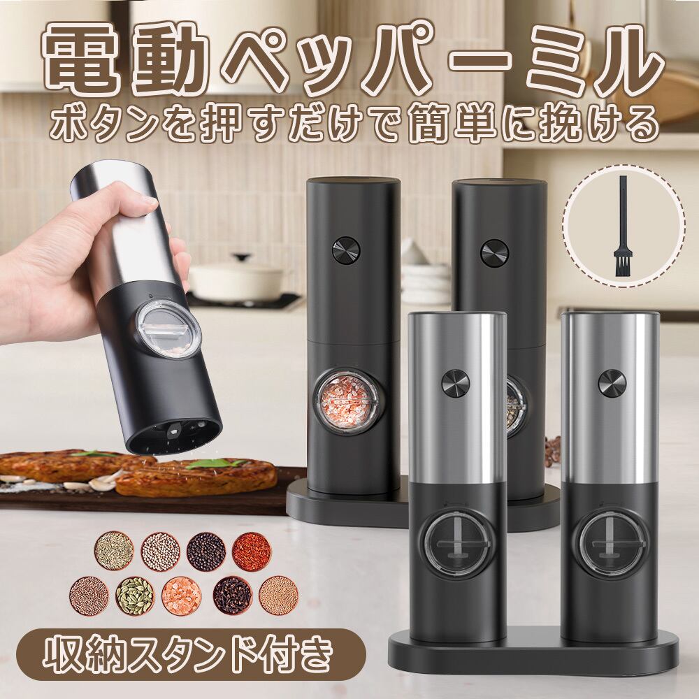 kymq-1416-d2【片手でボタンを押すだけ 挽ける】電動ミル セット スタンドベース付 収納 スパイスミル 電動 ペッパーミル ソルト ミル