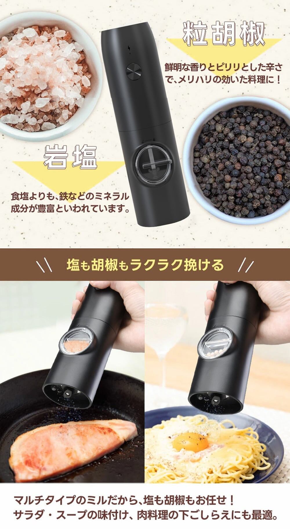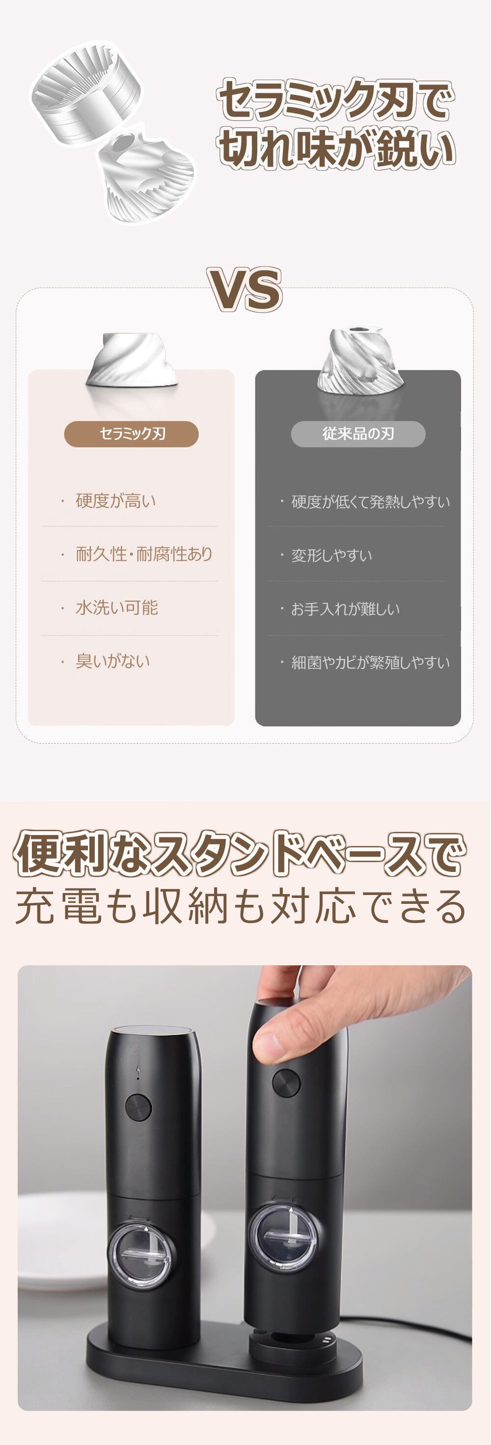 kymq-15c【片手でボタンを押すだけ 挽ける】電動ミル セット スタンドベース付 収納 充電 スパイスミル 電動 ペッパーミル ソルトミル