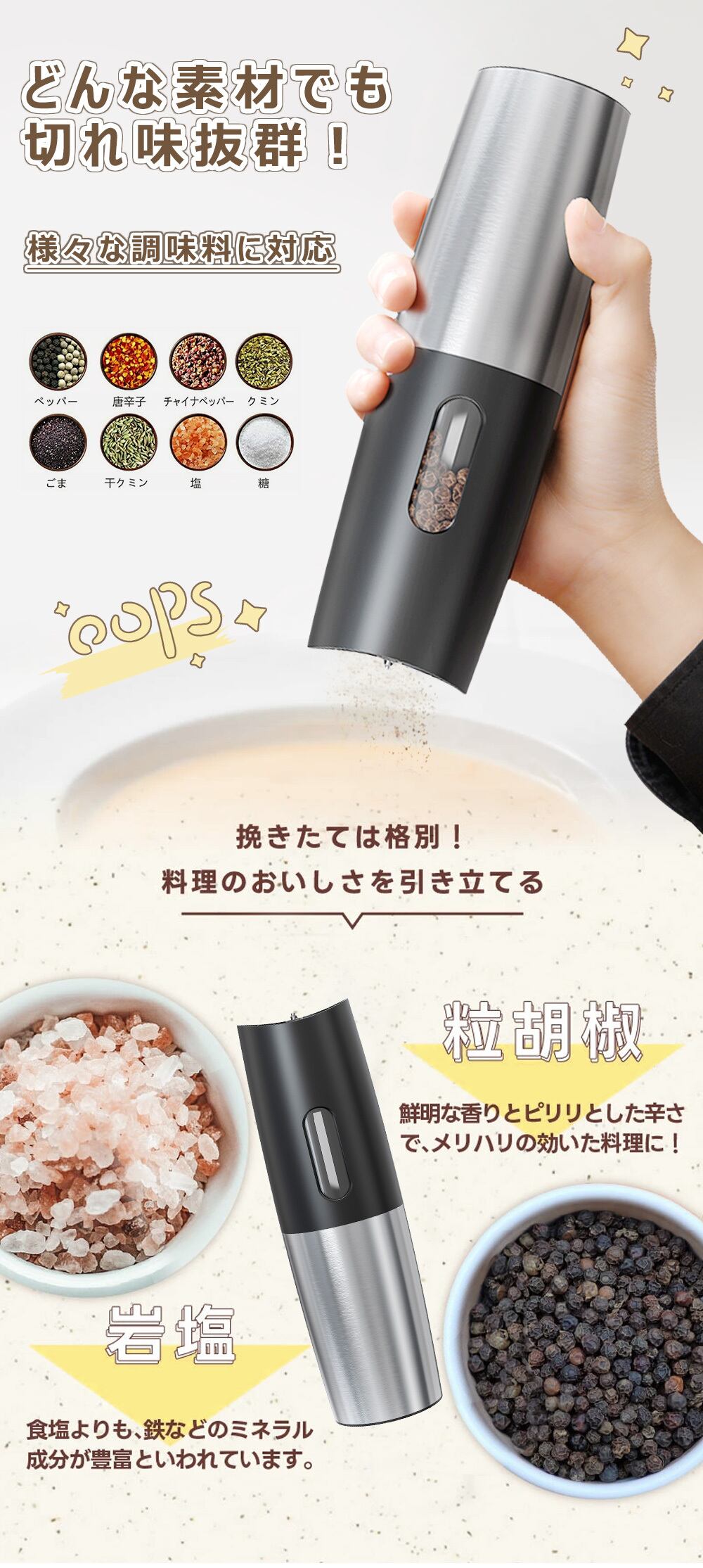 kymq-26a【片手で傾けるだけ 挽ける】電動ミル 重力感応センサーを搭載 スパイスミル 電動 ペッパーミル ソルトミル TYPE-C USB充電式 セラミック 粗さ調整 片手 ミル