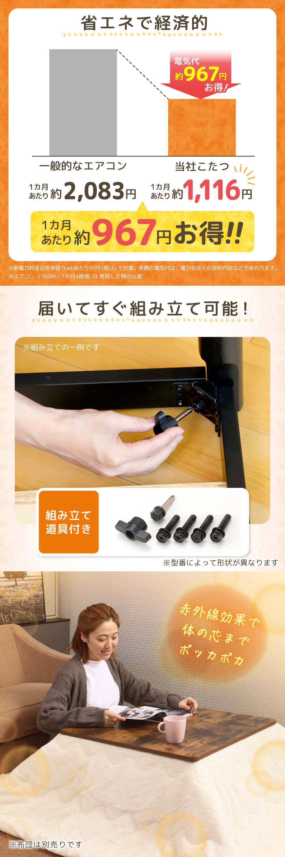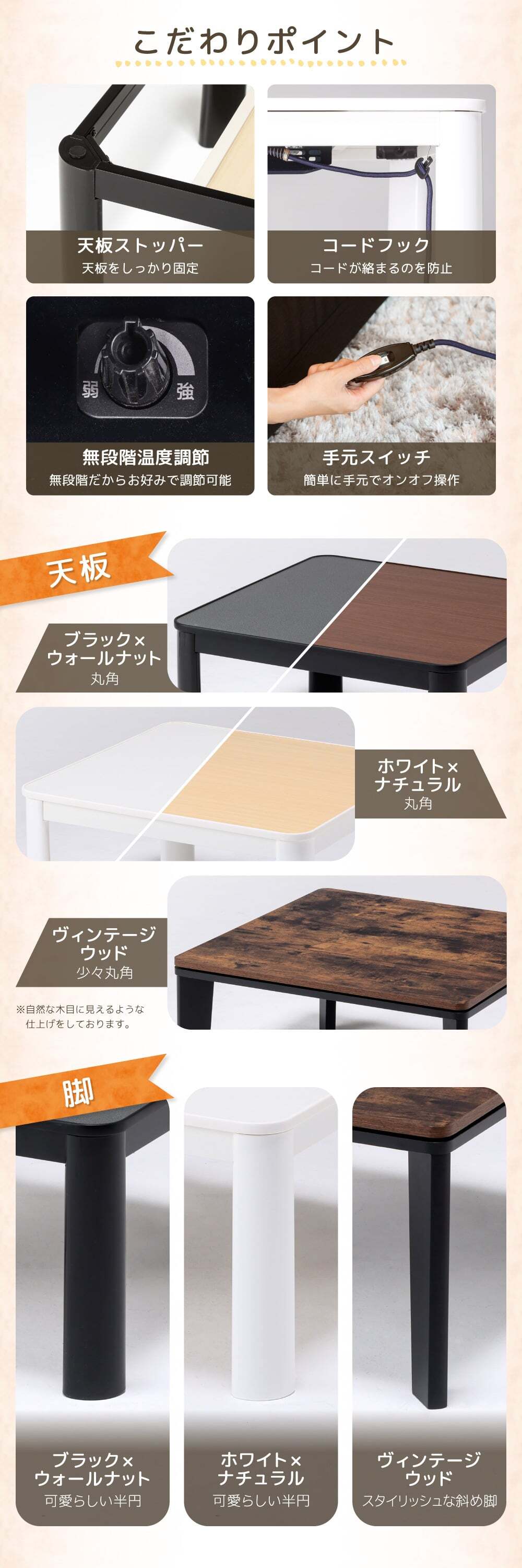 kotatsu7070 こたつ テーブル こたつ机 正方形 70×70 天面 カジュアル 暖房器具 季節家電 シンプル
