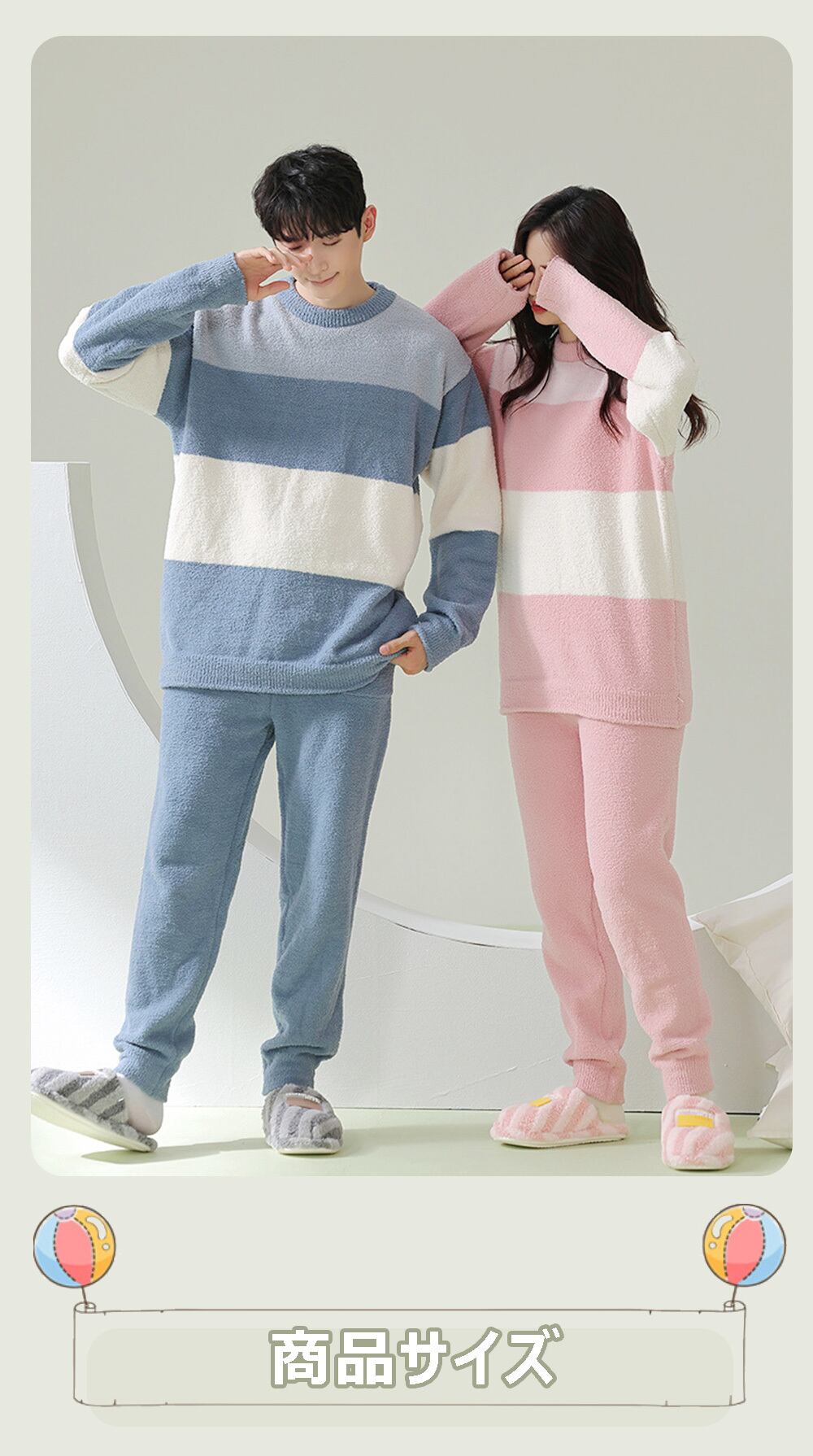 jjfsetup01 ルームウェア もこもこ 暖かい 上下セット セットアップ ボーダー レディース メンズ パジャマ 部屋着 長袖パジャマ 2点セット やわらかい 起毛パジャマ リラックスウェア 秋冬 秋 冬 春 可愛い プルオーバー 大きいサイズ ポケット付き ウエストゴム フリース