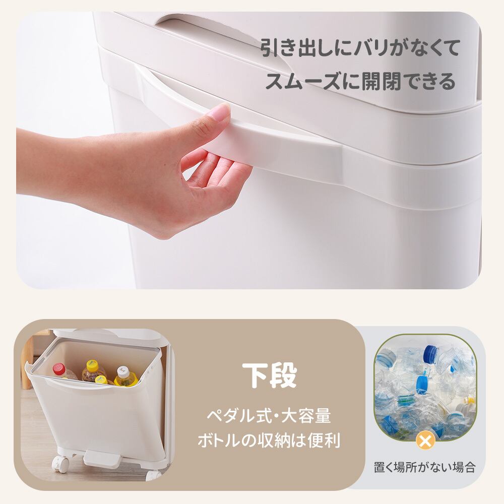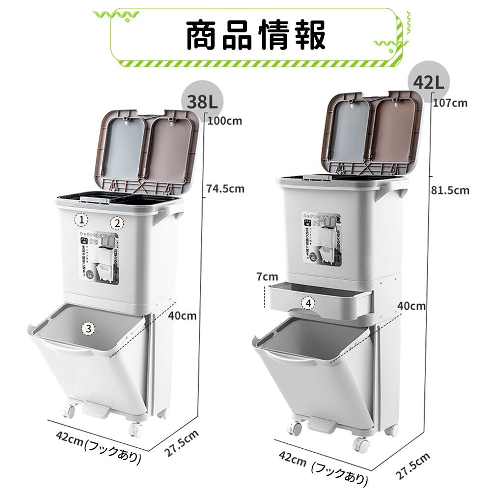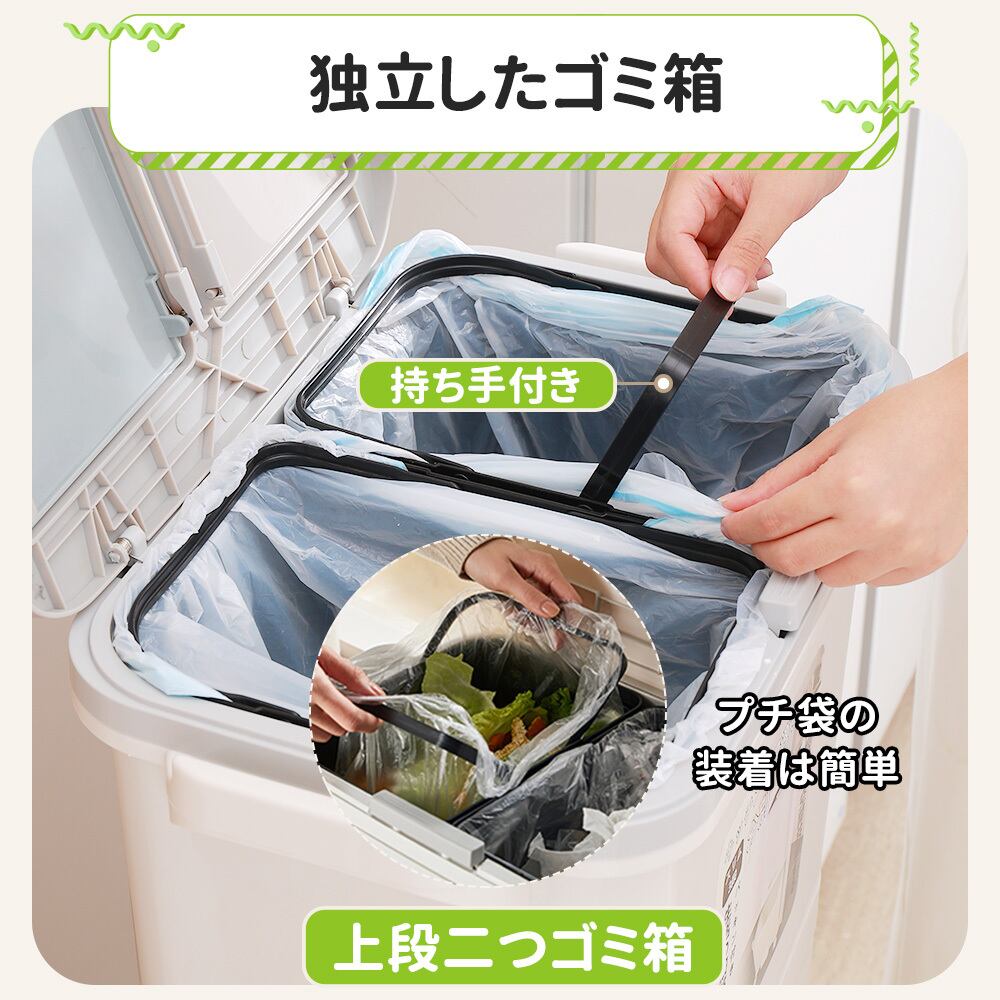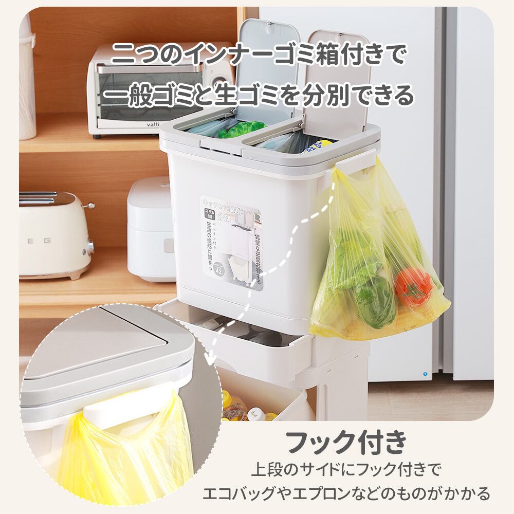ljt-7031 ゴミ箱 フタ付き インナーゴミ箱内蔵 38L 42L 大容量 スリム 省スペース 引き出し付き キャスター付き 移動簡単 袋が見えない 分別 密閉 キッチン 洗面所 リビング 寝室 トイレ バスルーム ホワイト 新生活 引っ越し祝い おしゃれ