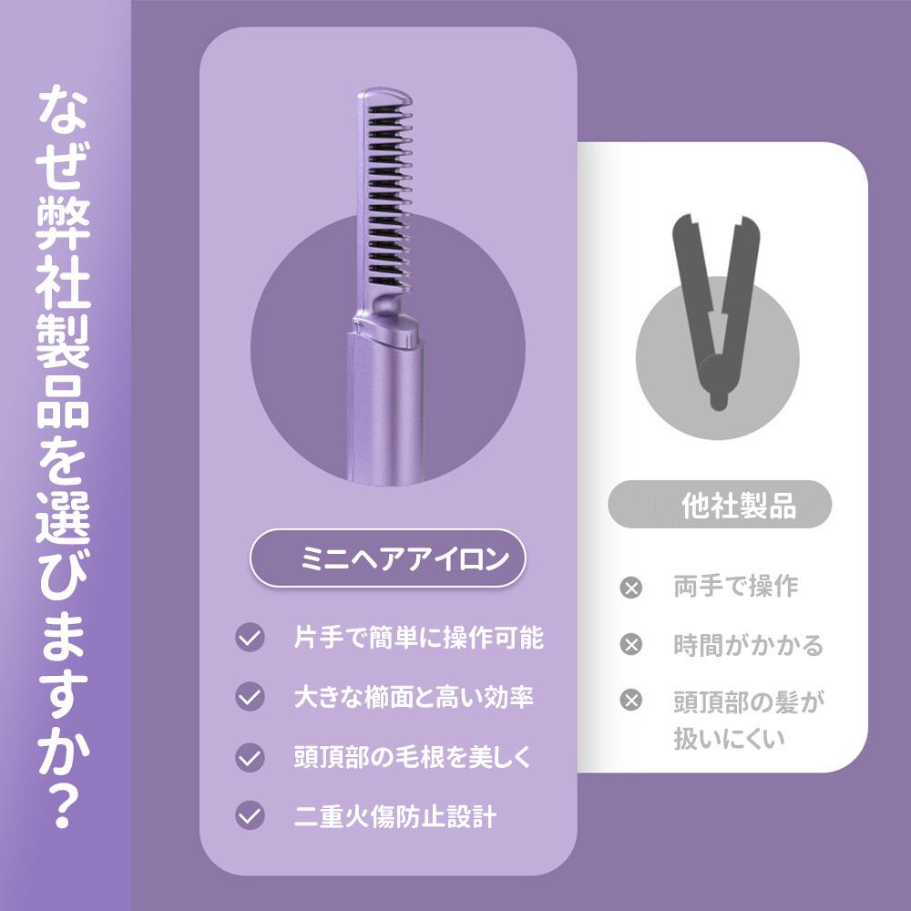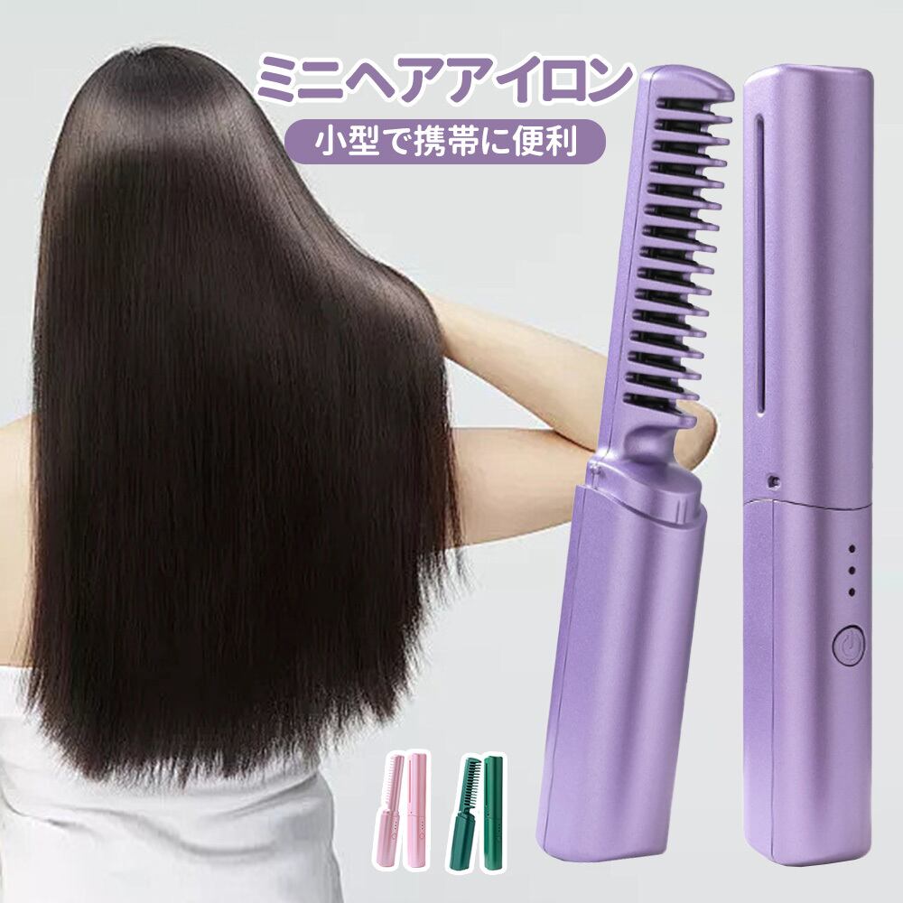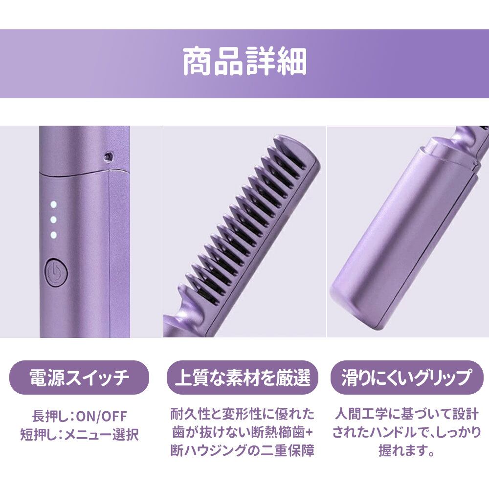 mnzjfq ヘアアイロン くし型 ブラシアイロン コードレス USB充電式