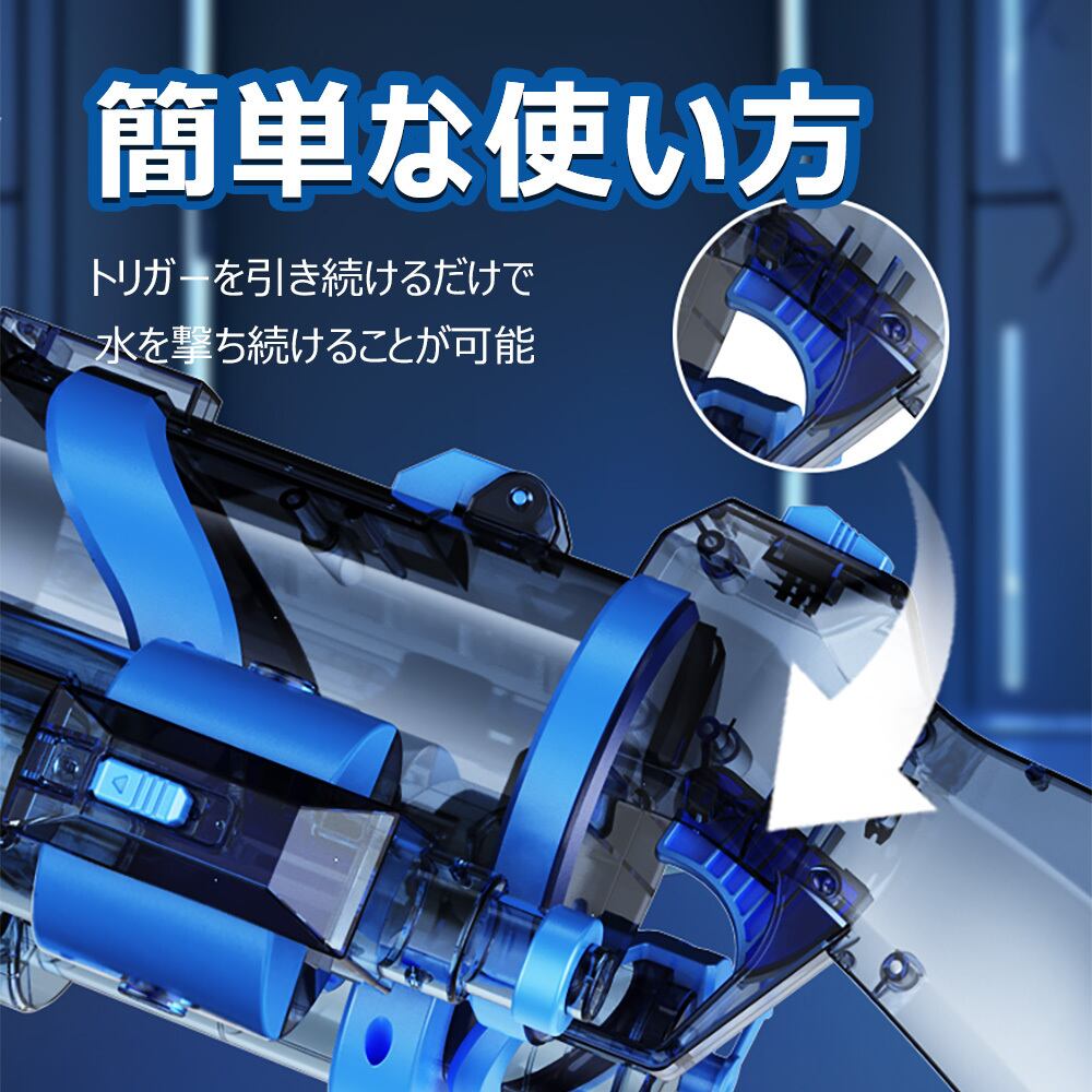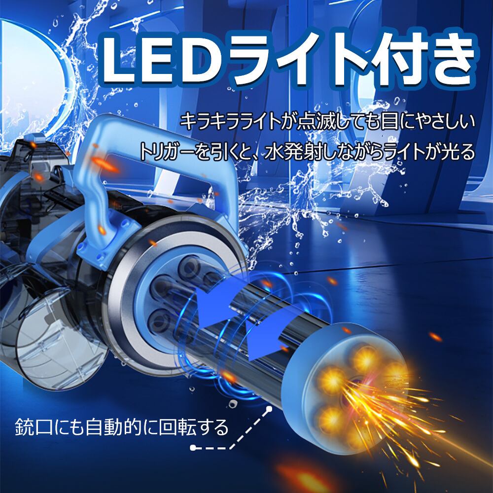 ddsq-999 水鉄砲 電動 ガトリングガン ガトリング 自動ウォーターガン 連射水鉄砲 タンク容量400ml 射程距離 10m 水遊び おもちゃ 海水浴 プール 夏休み 夏祭り 子供 大人兼用 8歳以上適用 誕生日 プレゼント