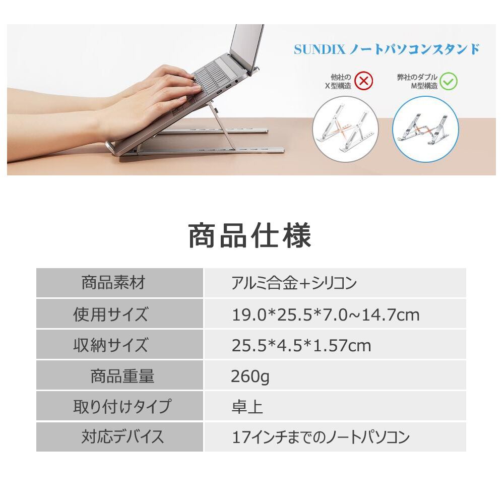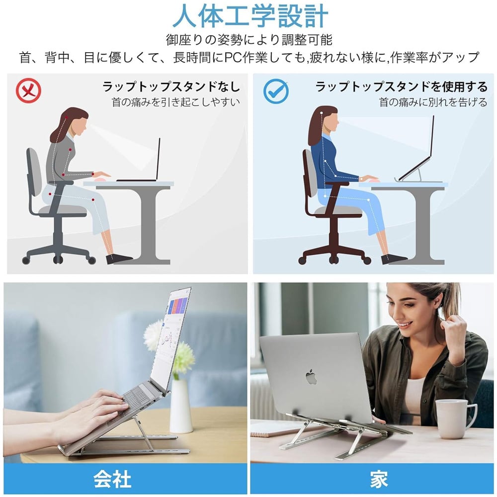 dnzj ノートパソコンスタンド すべり止め付き パソコンスタンド 斜め 無段階調節 PC台 軽量 アルミ pcスタンド テレワーク 揺れにくい 滑り止め付き 工具不要 17インチ迄対応 スタイリッシュ 在宅 仕事 会社