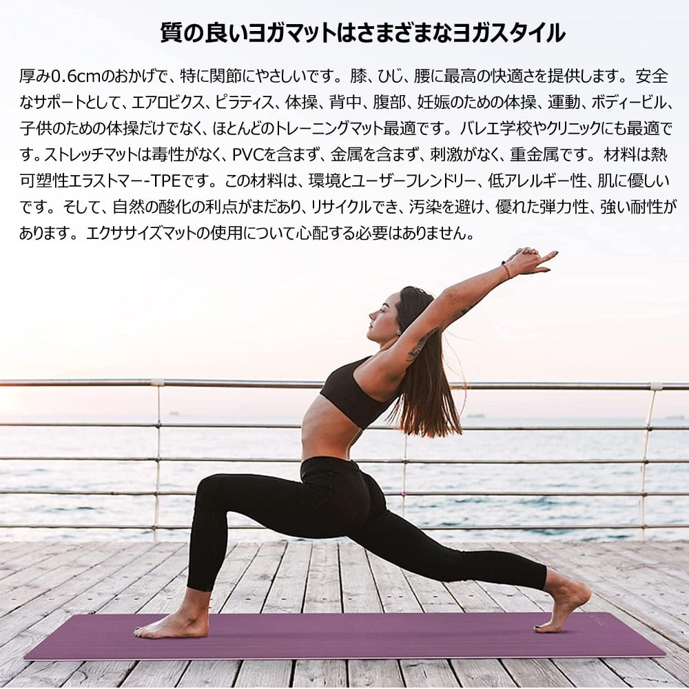 yjdyxk ヨガマット 6mm TPE 素材 厚手 バンド 付き ピラティスマット 筋トレ エクササイズ ヨガ ストレッチ トレーニング ダイエット トレーニングマット ストレッチマット エクササイズマット 軽量 幅広 大判 宅トレ 女性 マットレス